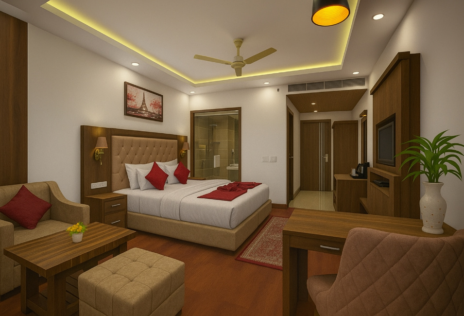 It was excellent bcoz all the staff members were friendly and polite. Everything was up to the mark. Loved the stay. Loved their gesture of welcoming the guests with Namaskar. Breakfast was delicious. 10 stars.